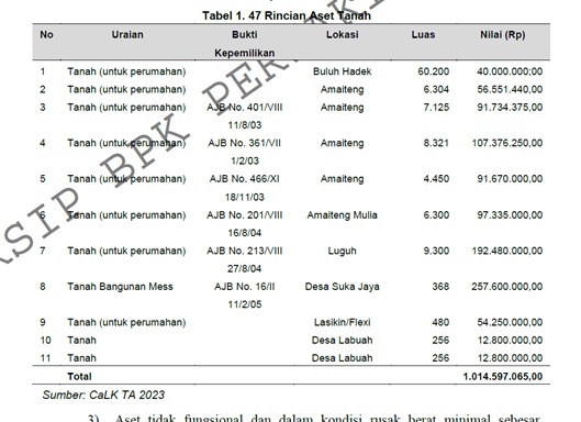 “Penelusuran lebih lanjut atas CaLK TA 2022 dan data aset PDKS diketahui bahwa PDKS memiliki aset tanah sebesar Rp1.995.306.504,” demikian bunyi yang ditulis dalam LHP BPK yang diperoleh Gumpalannews.com.